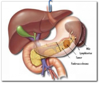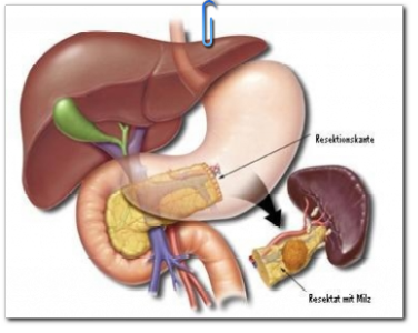Bei Tumoren des Pankreasschwanzes wird eine linksseitige Resektion der Drüse vorgenommen, eventuell muss dabei auch die Milz mit entfernt werden.